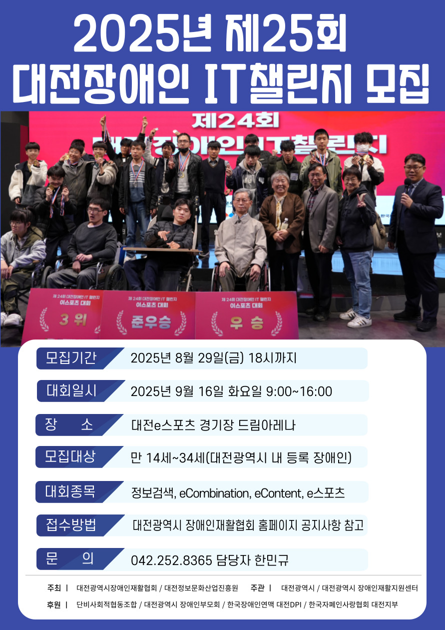 | 제25회 대전장애인IT챌린지 개최 안내 (1) | 2025.08.18 |