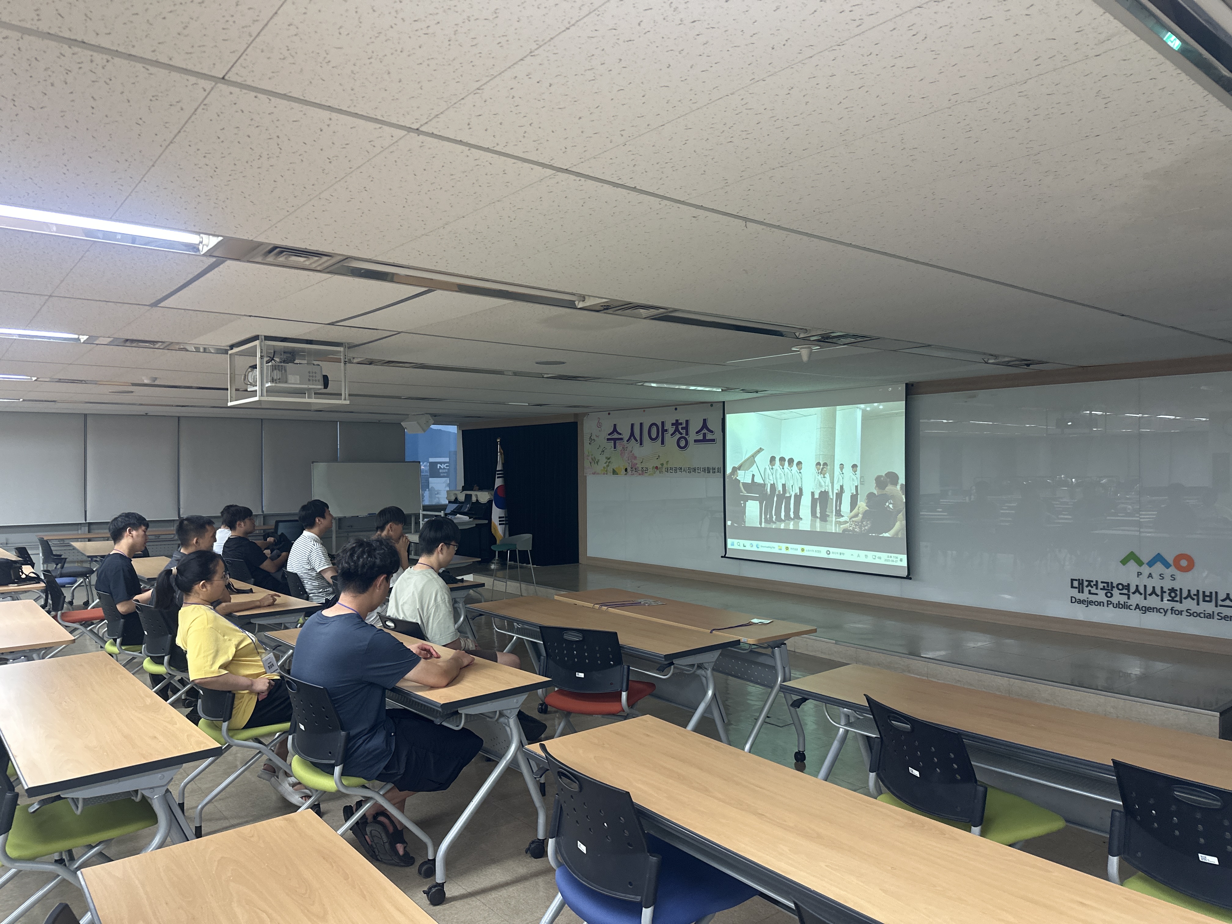 지난 2025년 8월 27일 수요일 저녁 7시부터 9시까지 대전사회복지회관 9층 가치100+에서 합창교육을 실시하였습니다.