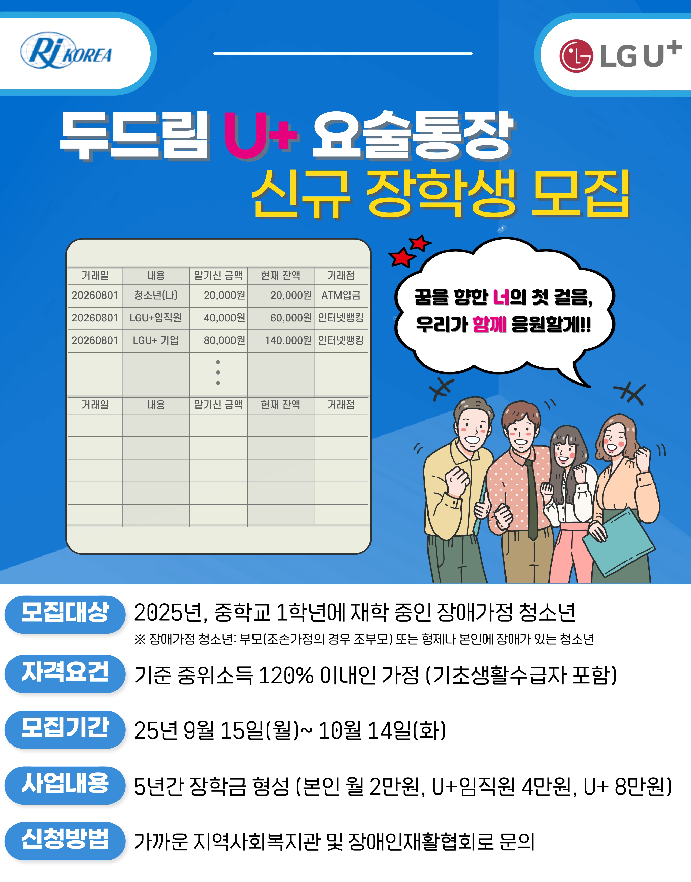 제16차(2025-2026) 두드림U+요술통장 신규 장학생 모집을 모집합니다!