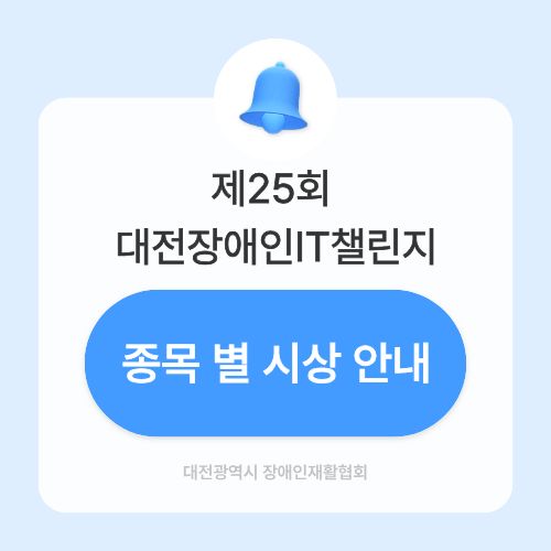 | 제25회 대전장애인IT챌린지 시상 관련 안내 (0) | 2025.09.30 |