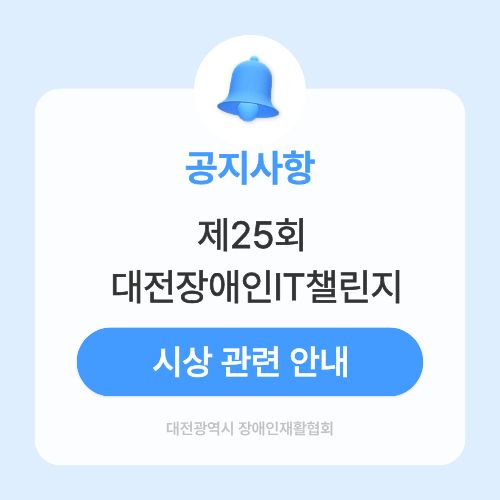 | 제25회 대전장애인IT챌린지 종복별 시상 안내 (0) | 2025.09.29 |